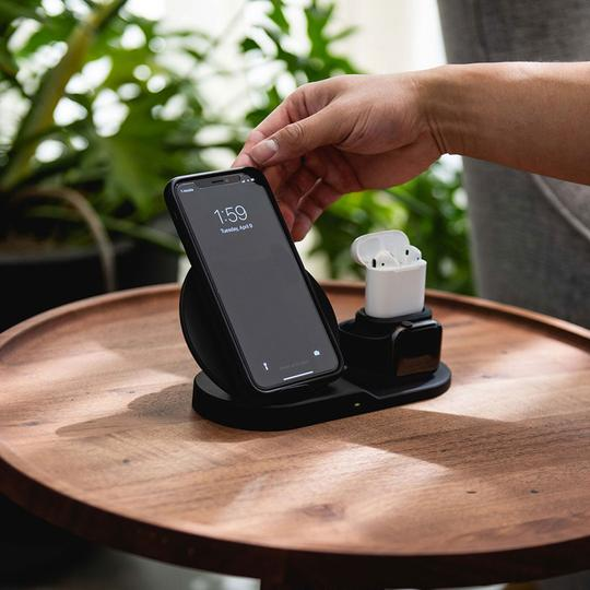 -Design inovator, 3 in 1 va permite sa incarcati simultan telefonul mobil, castile wireless, si smartwatch-ul.
