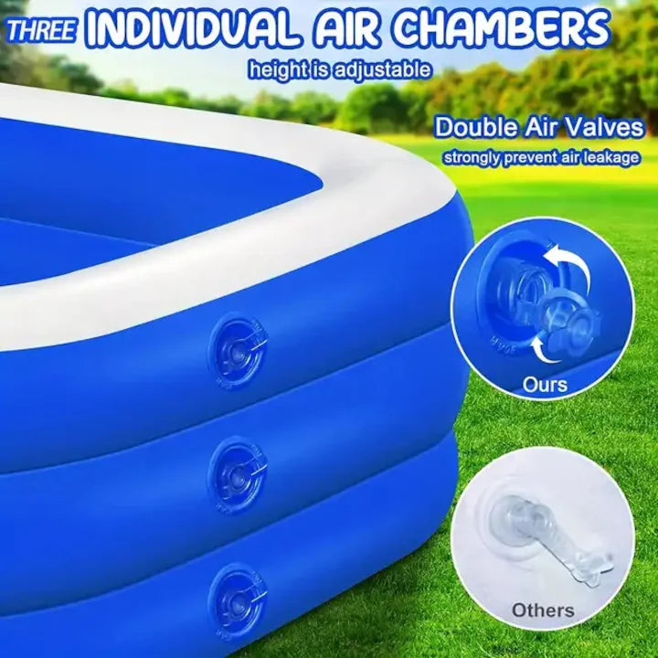 Piscina Gonflabila Family Fun – 3 Inele, Perete Moale, 180 x 120 x 60 cm, Albastru