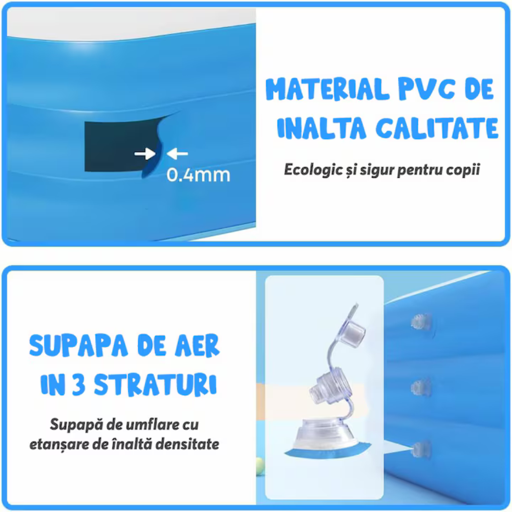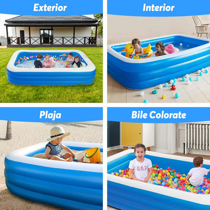 Spațiu suficient pentru bălăceală, joacă cu jucării gonflabile sau bile colorate