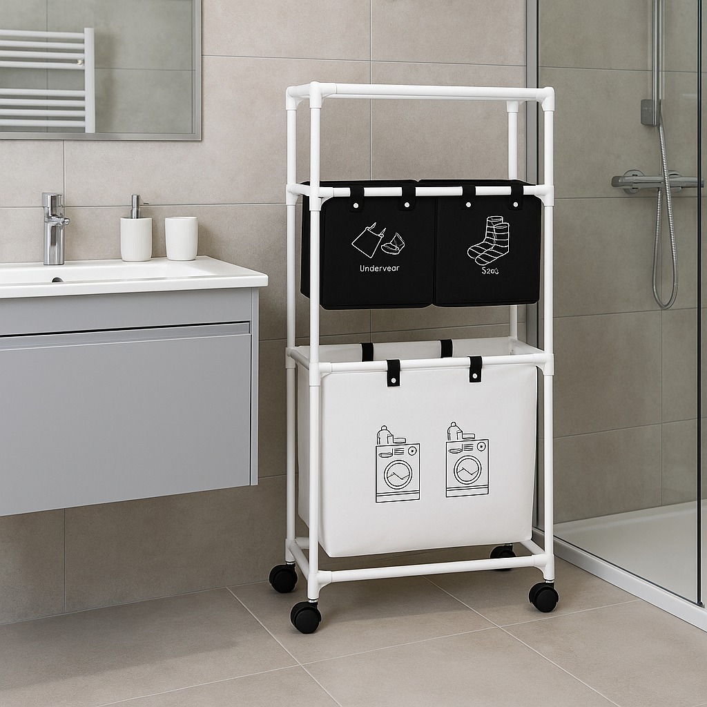 Fie că vrei să sortezi hainele înainte de spălare, să economisești spațiu sau să adaugi un element practic în baia ta, Raftul Flippy este soluția ideală pentru organizare eficientă și durabilă.