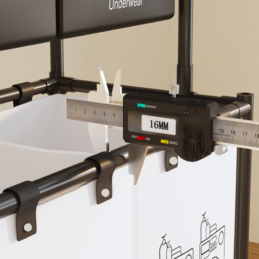Cadru realizat din oțel inoxidabil, rezistent la umiditate și coroziune, coșuri fabricate din material netesut durabil și plastic PP, iar dimensiunile compacte (115 x 25 x 55 cm) îl fac ușor de integrat în orice colț al casei tale.
