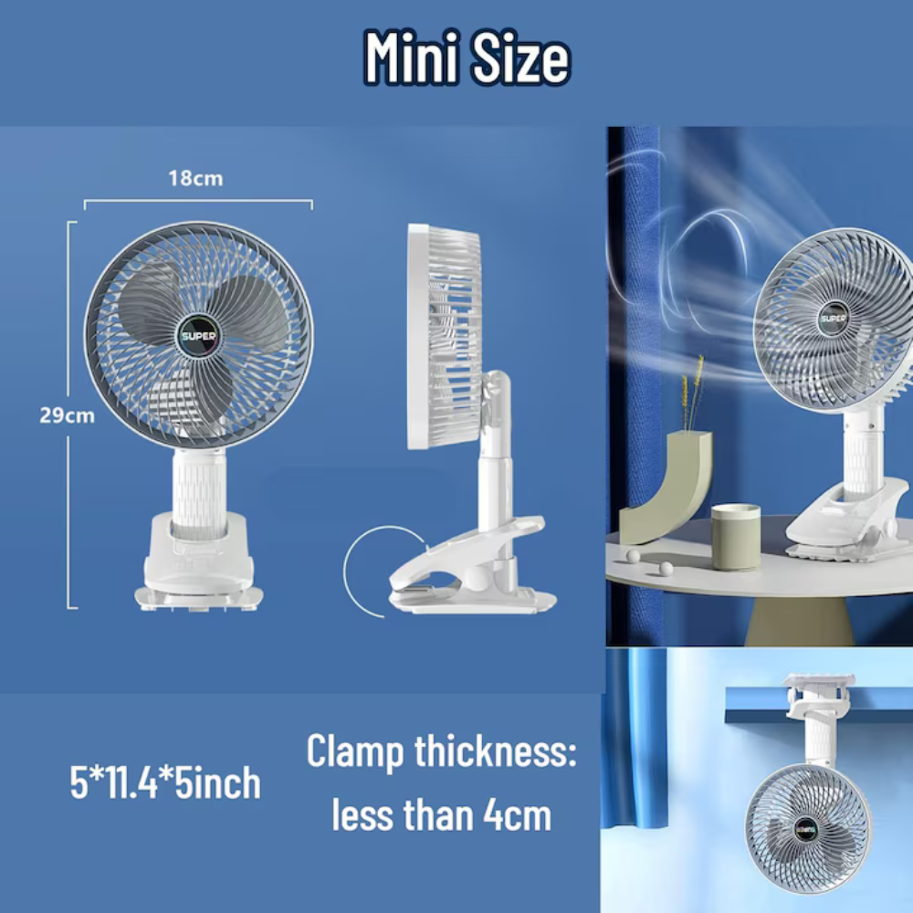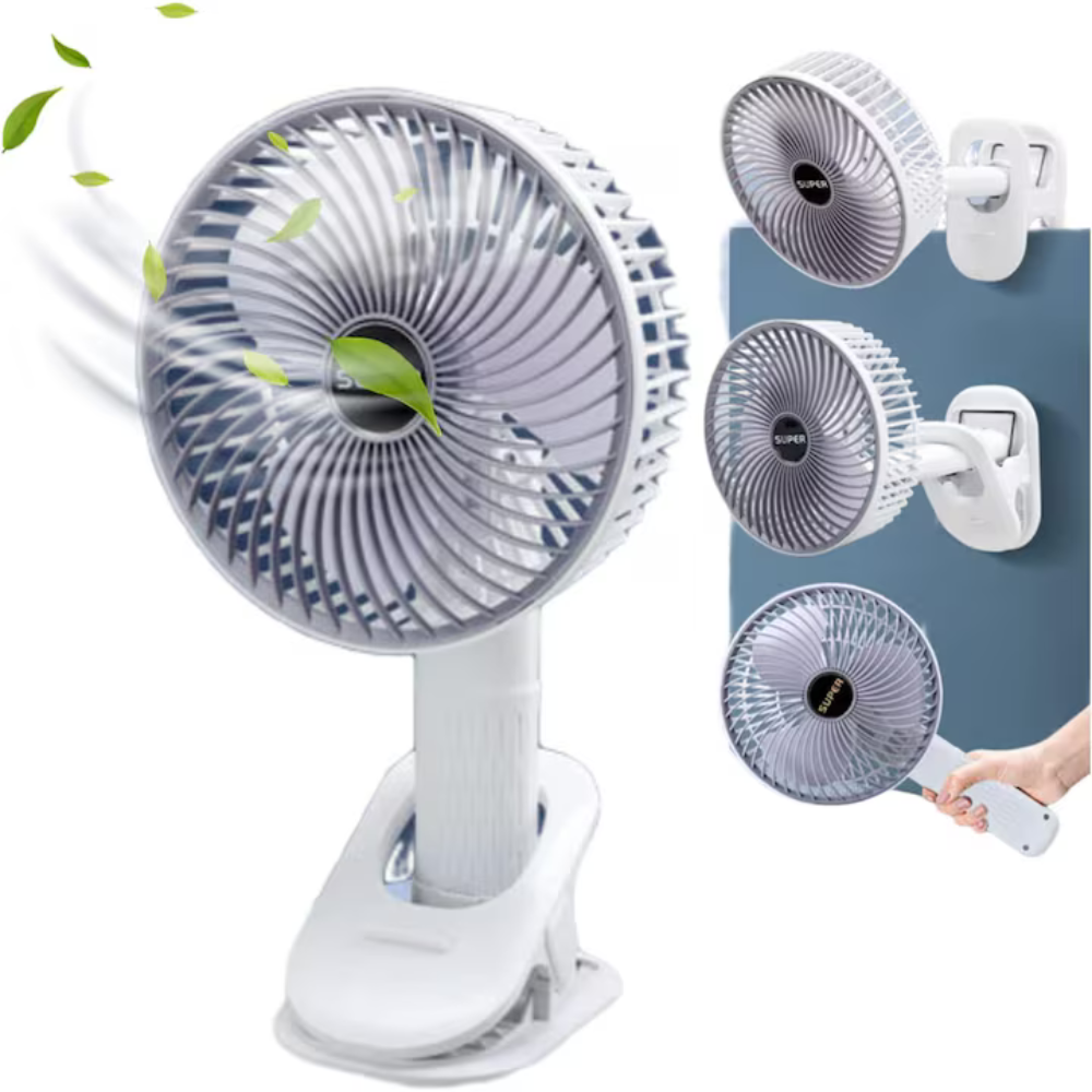 Ideal pentru birou, dormitor, carucior, bucatarie sau in calatorii, acest ventilator portabil cu prindere tip clipa ofera confort optim chiar si in zilele cele mai calduroase.